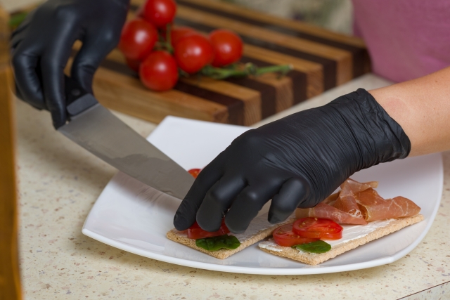 手袋を着用することで、直接的な接触を減らし、異物が食材に混ざるリスクを抑えられます。