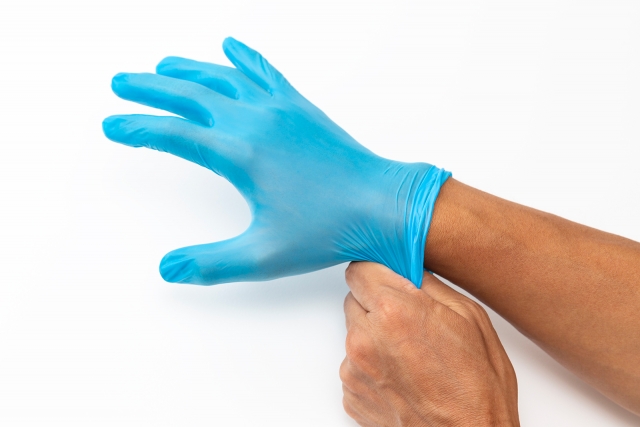 パウダー加工された手袋は、内側に粉が付いているため着脱がしやすい点が特徴です。
