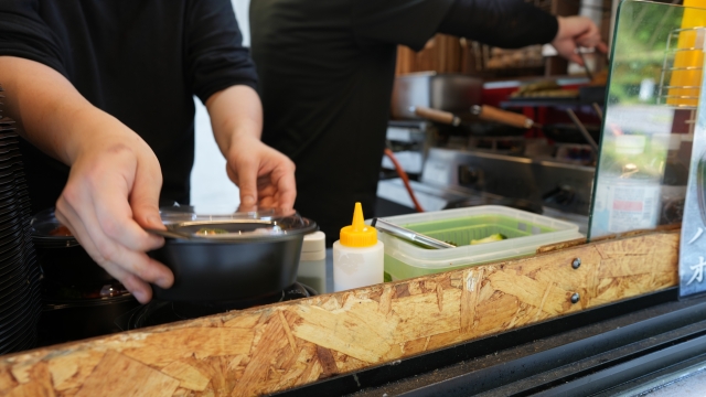 キッチンカーでは限られたスペースで作業するので、一人で営業することも可能です。食器を下げて洗う必要もなく、人件費がかかりません。