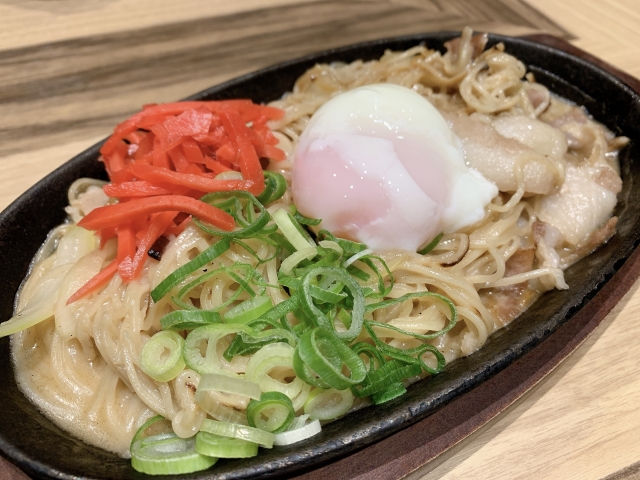 半熟目玉焼きや温泉卵は、焼きラーメンとの相性が非常に良いトッピングです。