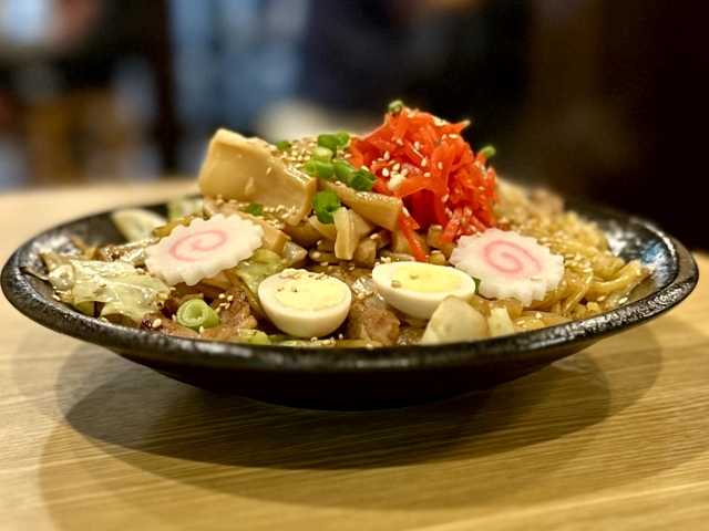 見た目は焼きそばに近いものの、ラーメン用の麺とコクのある味付けにより、香ばしさと濃厚さを同時に楽しめます。
