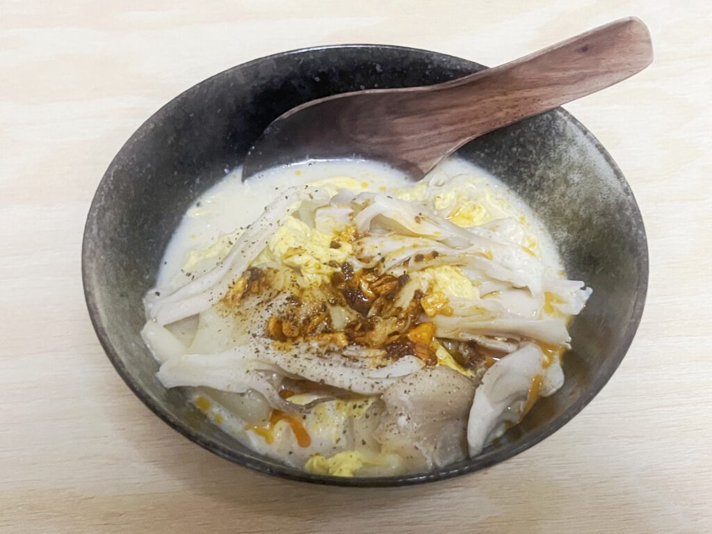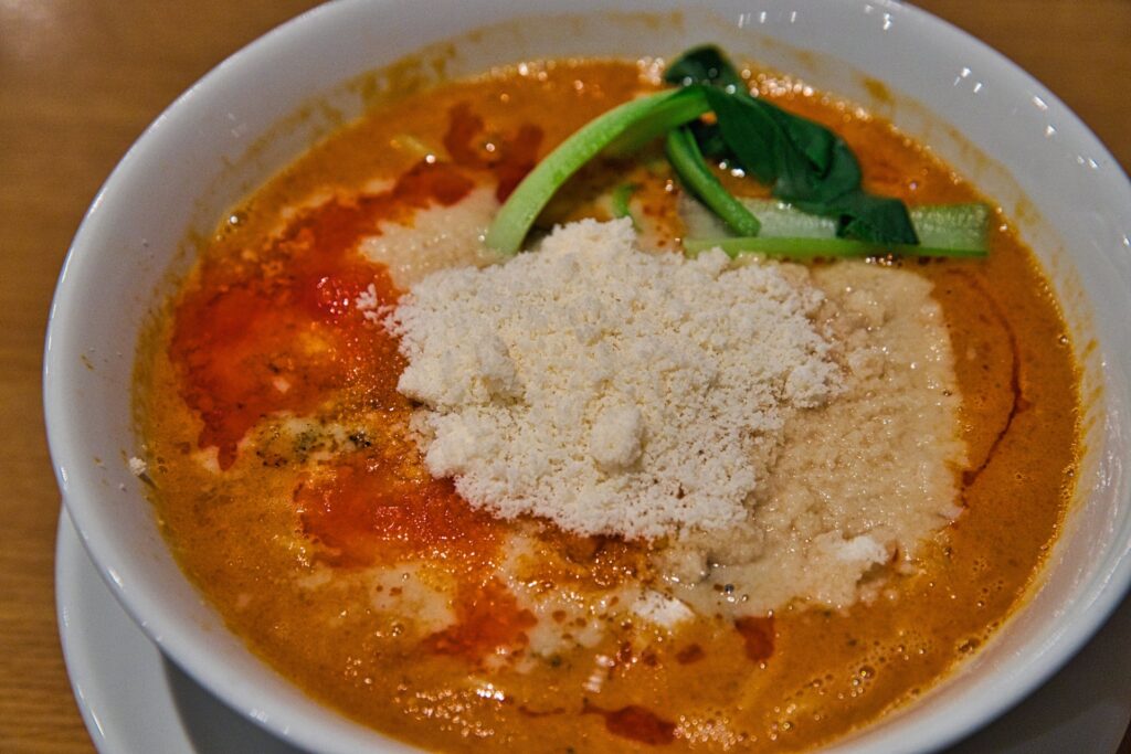 白湯ベースに無調整豆乳を加えてマイルドにした、ヘルシー志向のアレンジ。