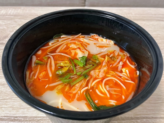 ピリ辛スープにとろけるチーズを加えたアレンジ。辛さがマイルドになり、若者やチーズ好きの層に刺さります。