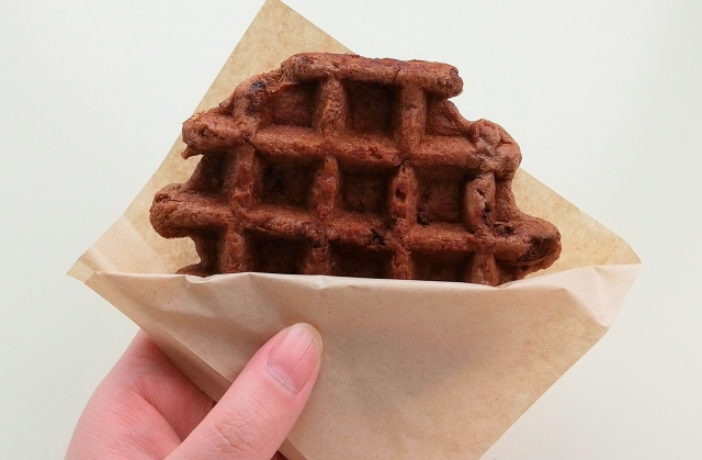 ココアパウダーを練り込んだワッフル生地は、見た目のインパクトが強く、目を引きやすい点が特長です。