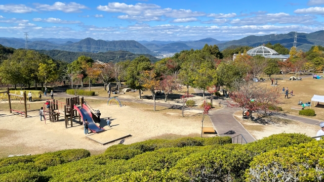 広島市東区の自然豊かな丘陵地に広がる広大な公園です。