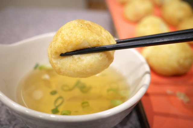 焼き上がった明石焼きは、お好みで温かい出汁または冷たい出汁につけて楽しむのが一般的です。