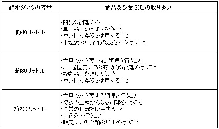 (参考:東京都保健医療局健康安全部食品監視課発行「自動車関係営業許可申請等の手引」)